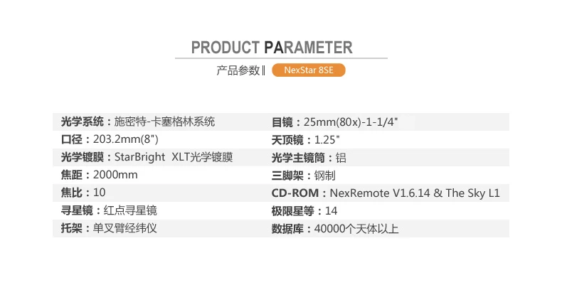 Celestron NexStar 8SE Astronomical Telescope 203/2000 Single Arm Theodolite Bracket Steel Tripod Focal Ratio F/10
