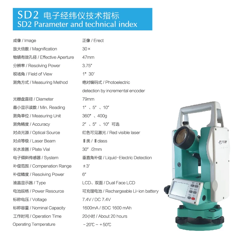 Cheap price Surveying Instruments SD2 cheap laser 30x Electronic digital Theodolite