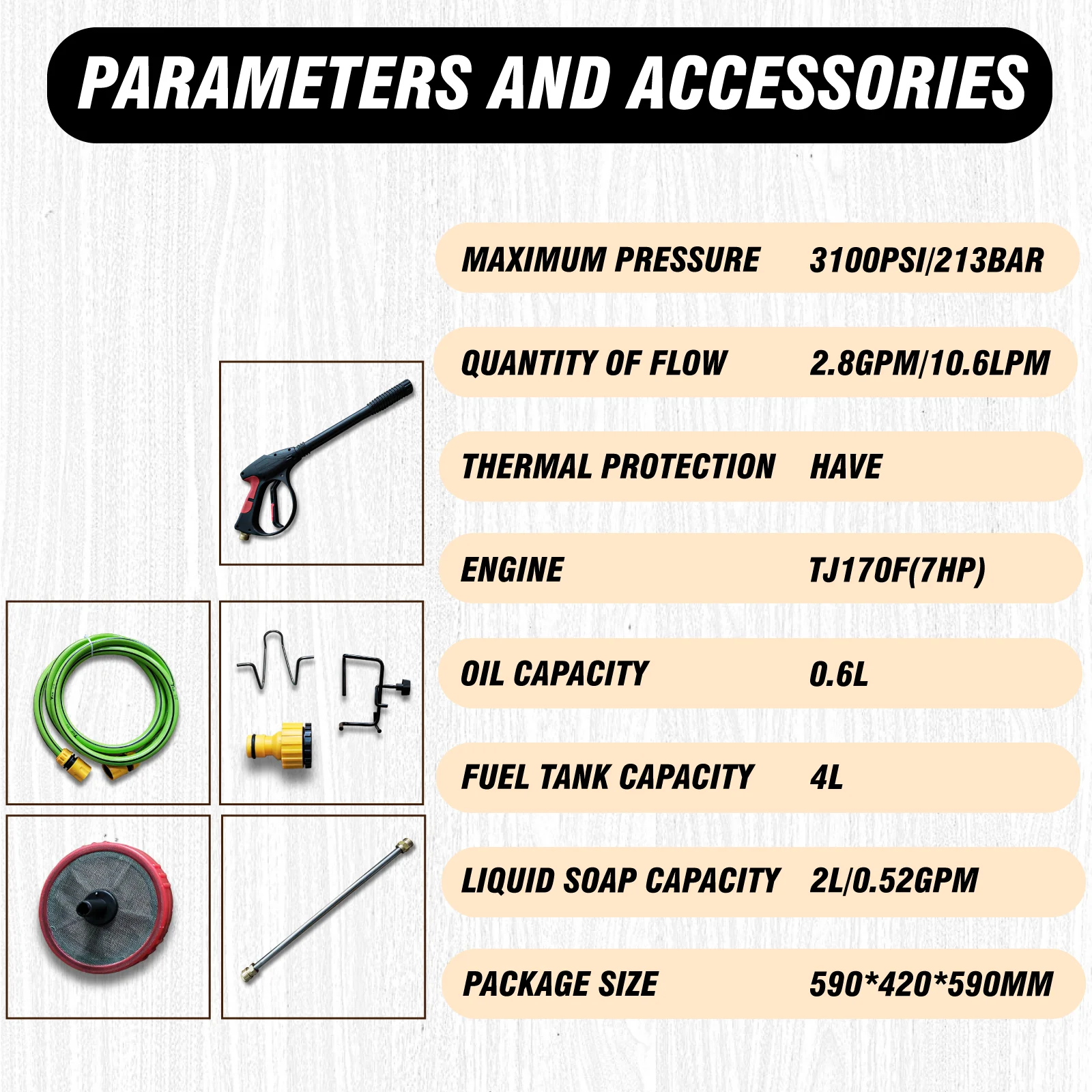 Multifunctional 3100psi/213bar 7Hp Petrol High Pressure Washer Machine 212cc Gasoline Cleaning Equipment For Personal Using
